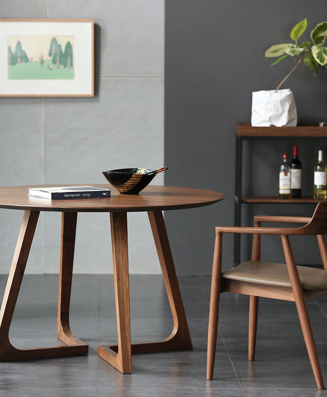 হট সেলিং উচ্চ মানের আখরোট সলিড কাঠের টেবিল কাঠের আসবাবপত্র গোলাকার ডাইনিং টেবিল কফি হোম রেস্টুরেন্ট ডাইনিং